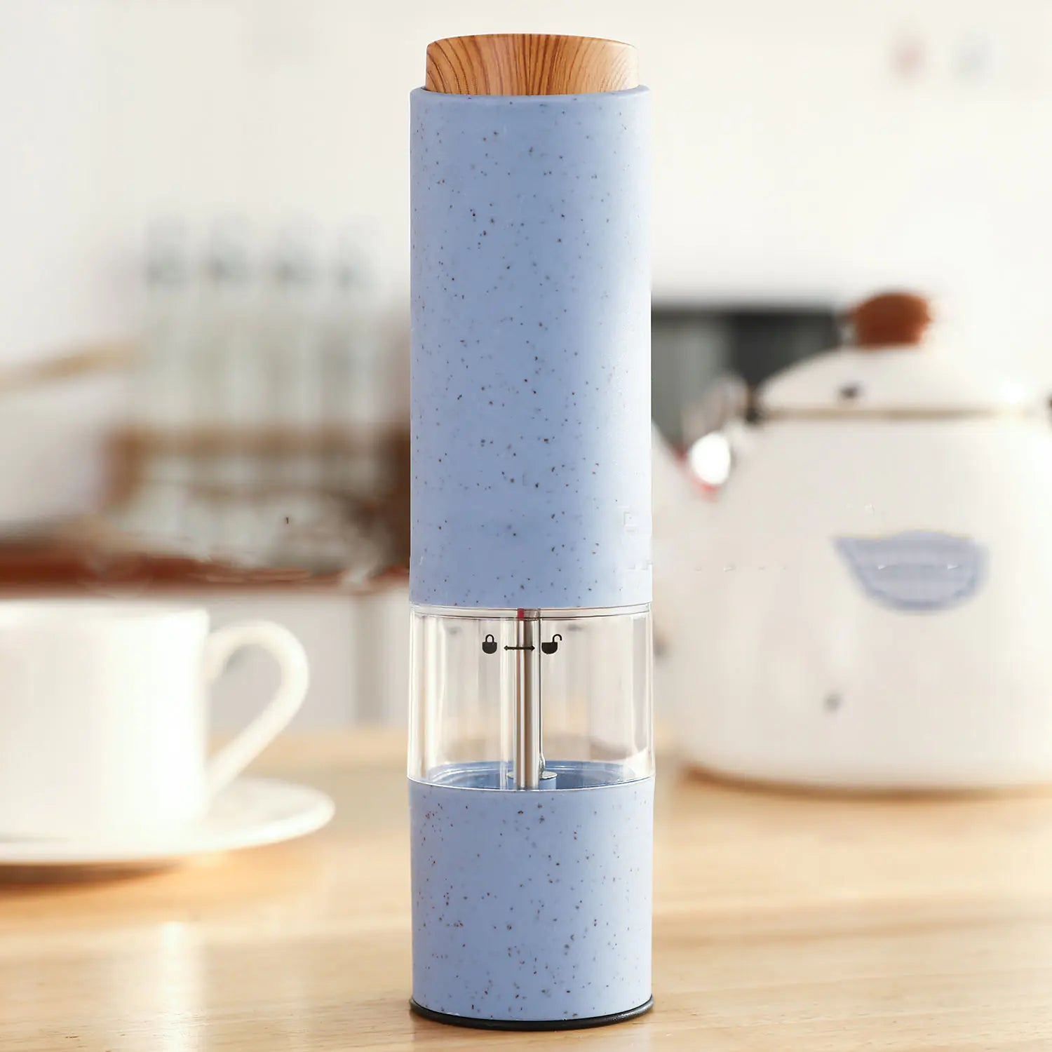 Het elektrische mechanisme maakt het malen moeiteloos en snel — ideaal wanneer je tijdens het koken je handen vol hebt. Bovendien geeft de keuze uit drie levendige kleuren (Blauw, Groen en Roze) je keuken een frisse en speelse uitstraling.